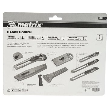 Канцелярские ножи Matrix обладают хорошими режущими качествами и очень полезны как творческим людям, дизайнерам и столярам, так и обычным людям, решившим затеять ремонт. Доступная стоимость изделия вкупе с отличным качеством выгодна также для фирм и компаний, которые заказывают канцелярские товары.