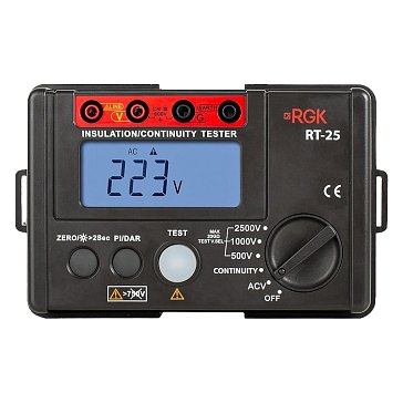 - Мегаомметр RGK RT-25 — это профессиональный прибор для измерения сопротивления изоляции, используемый в электротехнике, энергетике и других отраслях промышленности.